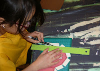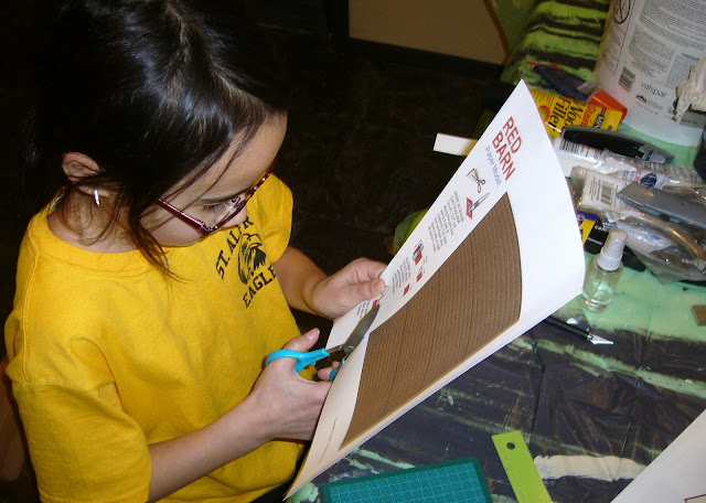 So I figured Sydney was old enough to use an X-Acto Knife under supervision. After a talk about knife safety and some demonstrations on using a knife and straight edge, I let her have a go at it. She took to it quite well. The next step was to teach her how to score edges. This involves a light cut into the surface of the paper but not enough through it. This allows a nice clean 'hinged' fold of the paper. The trick is to cut the right side of the paper, based on which way the paper folds. Many paper model kits indicate this by use of dashed lines on the printed side, and notes near the printed work where you are to score along the backside of the paper.