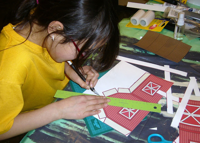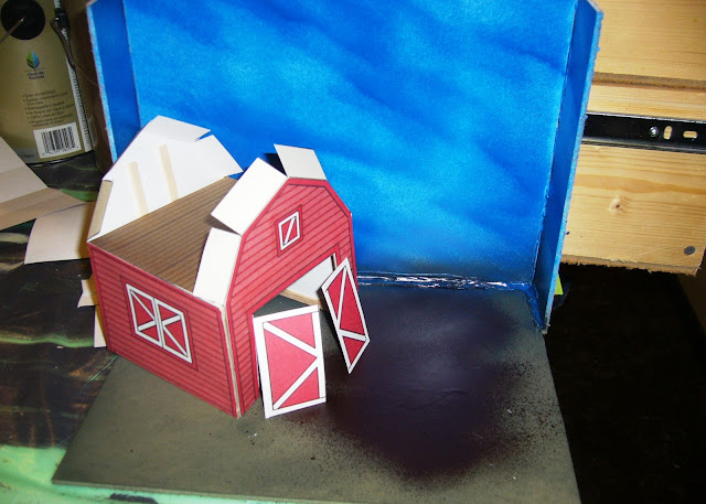 Pilgrim Cabin we did several years ago. However, we had much less time to work on this. I went about looking for some paper model kits of a barn online. There's ton's a great paper model kit files